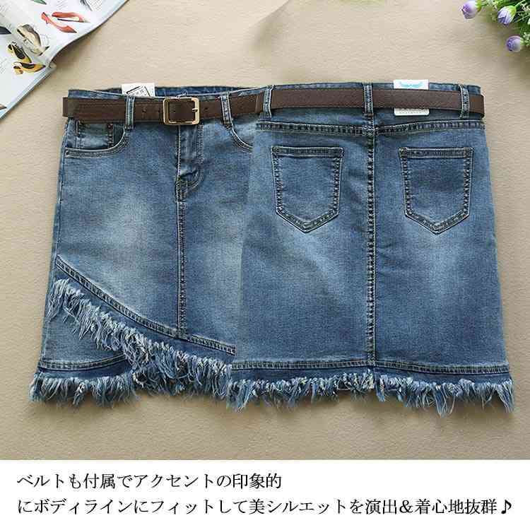 大人っぽくはける裾クラッシュ加工のミニデニムスカート。